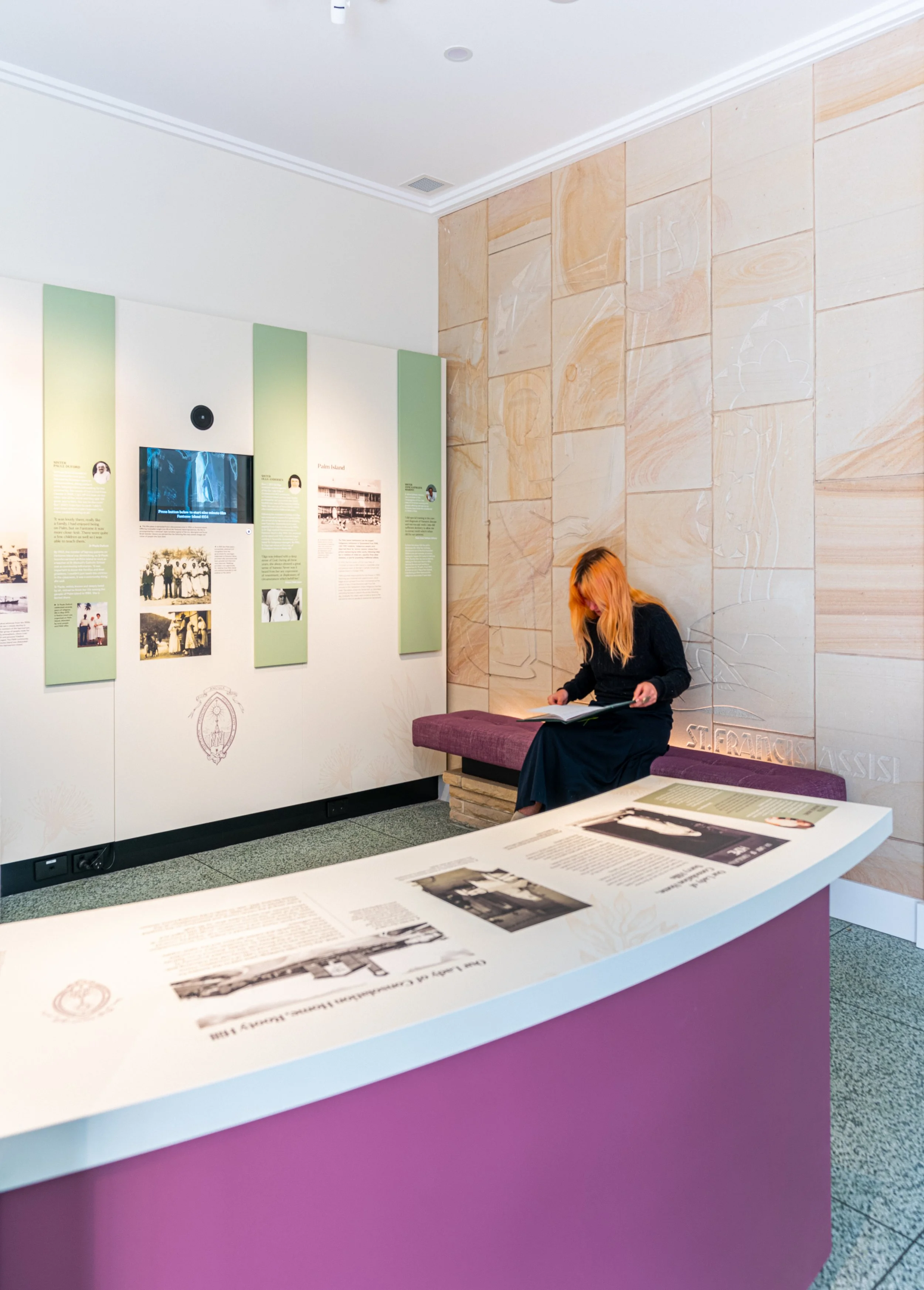 The project celebrates the origins of the FMM through the restoration of the chapel structure, the reuse of the original stained glass, highlighting the original sandstone and incorporating a permanent exhibition that displays images, artefacts and historic films from their archive.